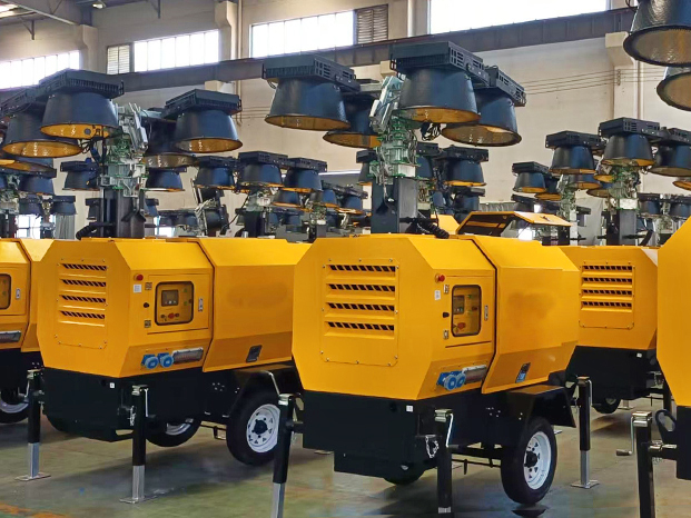 The mast is equipped with safety protection: it cannot be raised unless the foot brake is engaged. If the foot brake is released, the mast will automatically lower to a safe height. The light tower trailer is equipped with stabilizers to ensure steady operation and safe travel on various road surfaces.